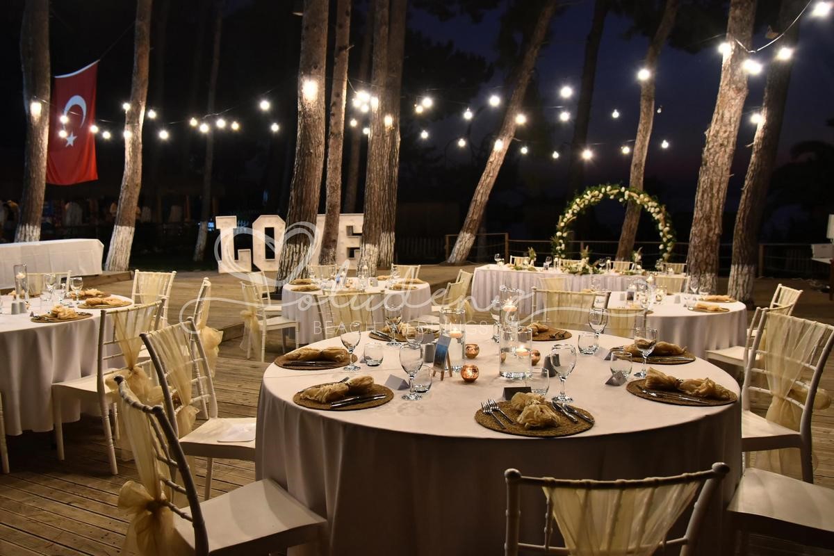 NB: The 12 hour wedding day commences at noon with a visit to the hair stylist and barber with the reception concluding at midnight - current Turkish legislation does not permit music to be played at open air venues after midnight. If you would like to continue partying into the small hours we are more than happy to take you to one of the clubs or bars of your choice in the area that remain open - however, having done so, this is where our responsibility ends.